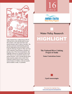 Amarasinghe, Upali. 2012. The National River Linking Project [NRLP] of India: some contentious issues. IWMI-Tata Water Policy Research Highlight, 16. 11p.