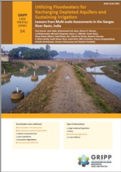 Pavelic, Paul; Sikka, Alok; Alam, Mohammad Faiz; Sharma, Bharat R.; Muthuwatta, Lal; Eriyagama, Nishadi; Villholth, Karen G.; Shalsi, S.; Mishra, V. K.; Jha, S. K.; Verma, C. L.; Sharma, N.; Reddy, V. R.; Rout, S. K.; Kant, L.; Govindan, M.; Gangopadhyay, P.; Brindha, K.; Chinnasamy, P.; Smakhtin, V. 2021. Utilizing floodwaters for recharging depleted aquifers and sustaining irrigation: lessons from multi-scale assessments in the Ganges River Basin, India. Colombo, Sri Lanka: International Water Management Institute (IWMI). 20p. (Groundwater Solutions Initiative for Policy and Practice (GRIPP) Case Profile Series 04) [doi: https://doi.org/10.5337/2021.200]