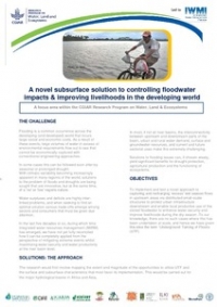 CGIAR Research Program on Water, Land and Ecosystems (WLE). 2013. A novel subsurface solution to controlling floodwater impacts and improving livelihoods in the developing world. Colombo, Sri Lanka: International Water Management Institute (IWMI). CGIAR Research Program on Water, Land and Ecosystems (WLE). 2p.