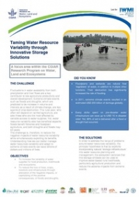 CGIAR Research Program on Water, Land and Ecosystems (WLE). 2013. Taming water resource variability through innovative storage solutions. Colombo, Sri Lanka: International Water Management Institute (IWMI). CGIAR Research Program on Water, Land and Ecosystems (WLE). 2p